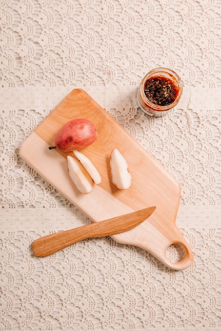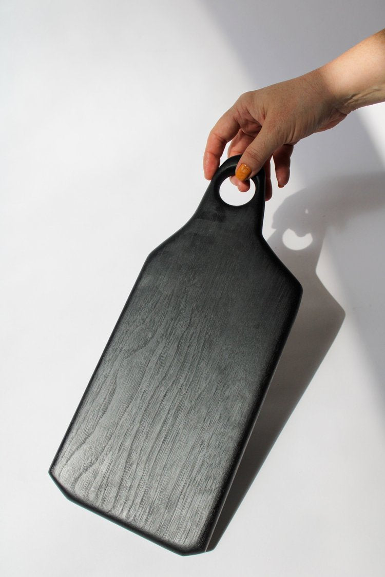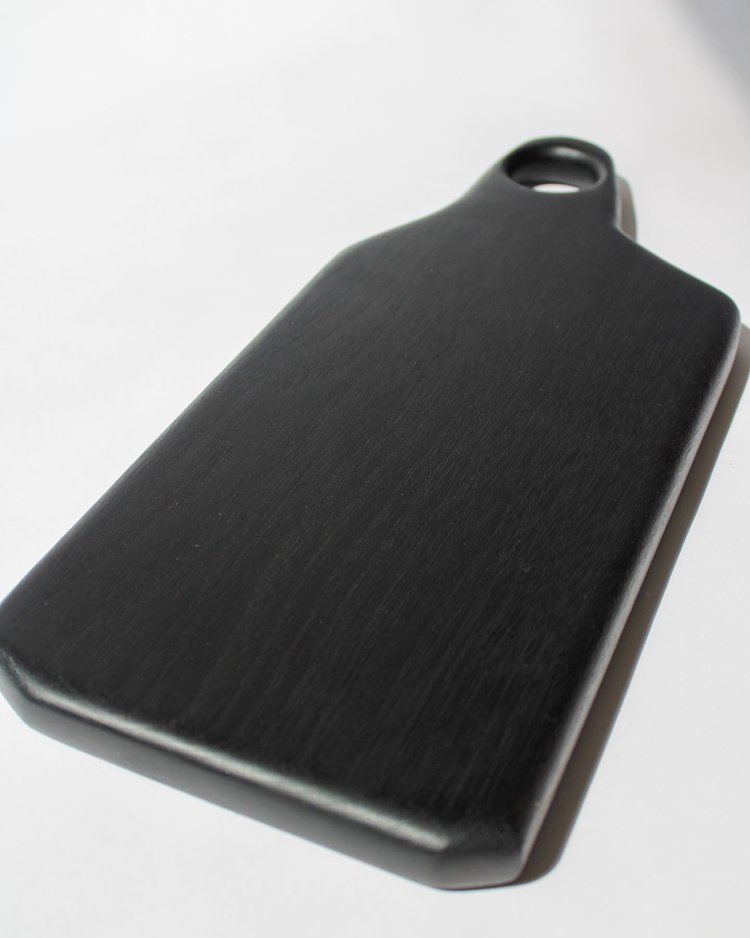 It looks like a ghost shape to me! An extra showy board for a charcuterie plate. Made with local wood from trees cut by utility companies and otherwise destined for the chipper. The deep color is achieved with a traditional ebonizing solution we make in house that reacts with the wood, turning the wood itself black.
